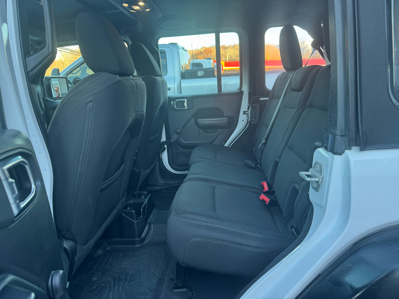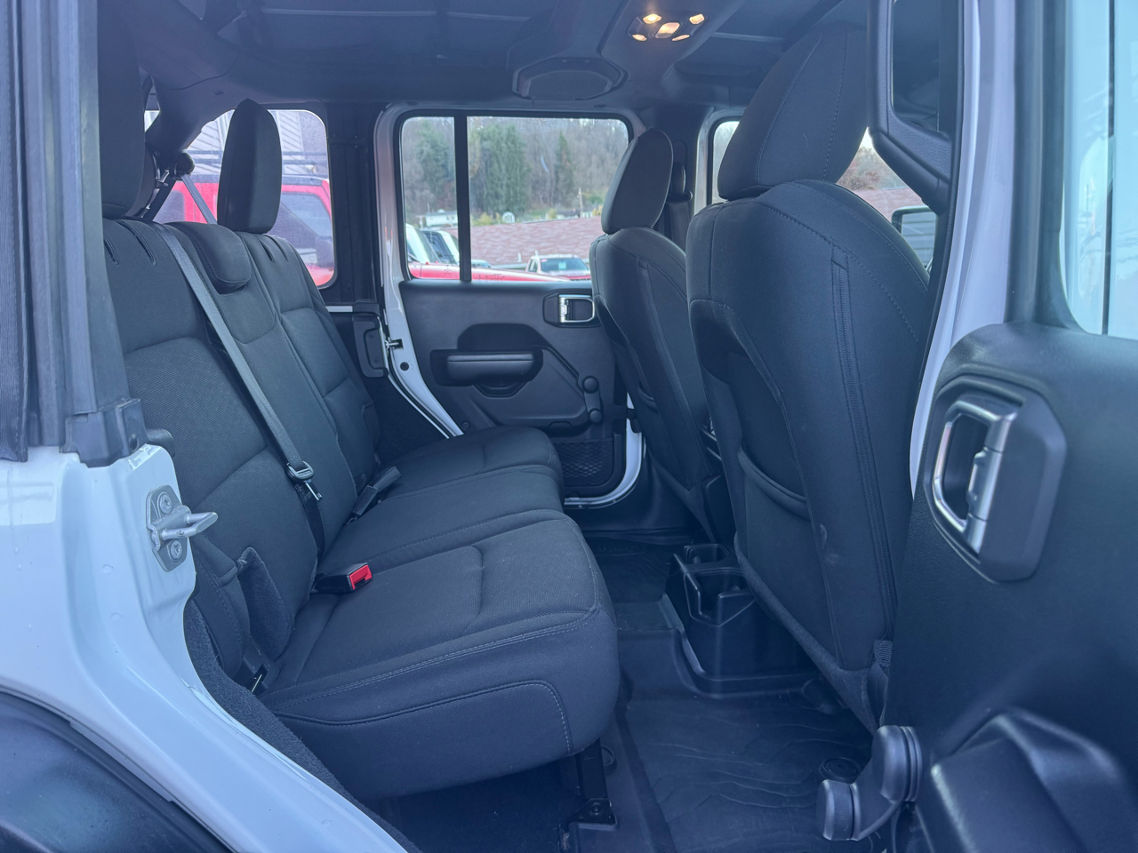 With its sleek black accents and convertible top, this Jeep Wrangler screams style and versatility. Imagine feeling the wind in your hair as you conquer the open road with the Manual Tailgate/Rear Door Lock securing all your gear in place. Inside, you'll find a spacious and comfortable cabin with plenty of room for all your travel companions. Not to mention, the ParkView Back-Up Camera ensures you can navigate tricky parking spots with ease.