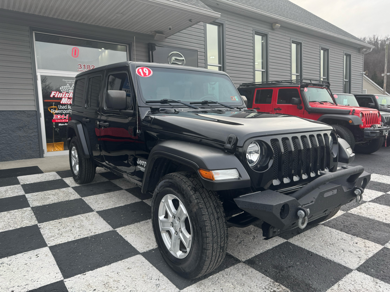 Meet the sleek and adventure-ready 2019 Black Jeep Wrangler Unlimited! With a powerful engine, advanced suspension system, and rugged exterior, this beast is designed for off-road excitement and urban style. Equipped with a range of features like a towing package, skid plates, and a maximum payload capacity, this Jeep is ready to tackle any terrain with ease. Take on the open road with confidence in this part-time four-wheel-drive vehicle, featuring a manual transfer case and auto locking hubs for seamless transitions. Cruise around town in style with the black exterior accents, fender flares, and fog lamps, turning heads wherever you go. The spacious interior offers comfort and convenience with a folding rear seat, multiple storage compartments, and modern technology like a touchscreen display and streaming audio system. Plus, rest assured knowing that a detailed Carfax report is available, giving you peace of mind as you hit the road for your next adventure. Don't miss out on the opportunity to own this impressive and reliable 2019 Jeep Wrangler Unlimited!Visit Finish Line Motors online at www.finishlinemotorswv.com to see more pictures of this vehicle or call us at 304-292-5279 today to schedule your test drive.