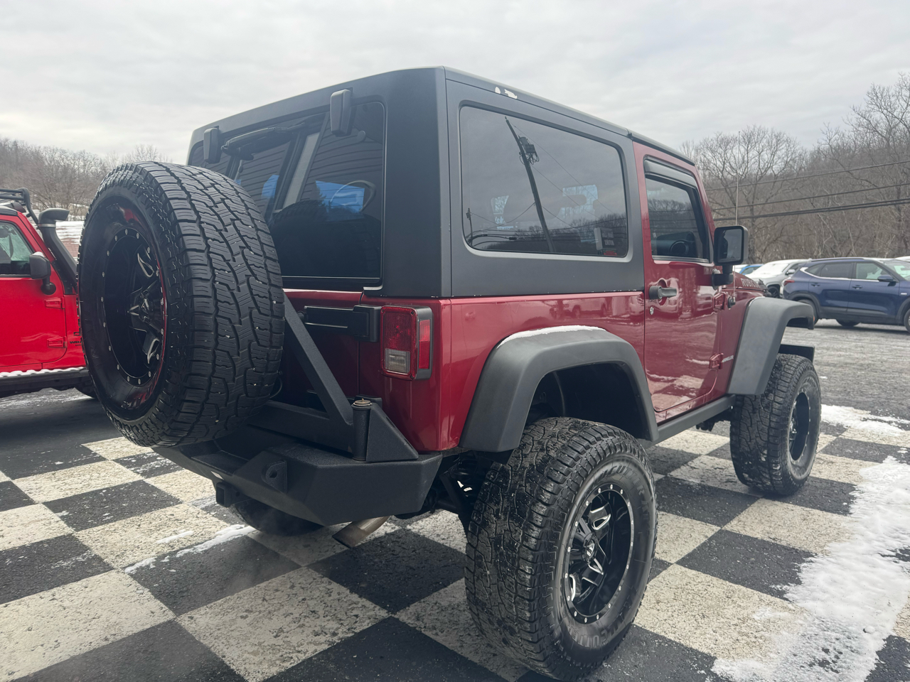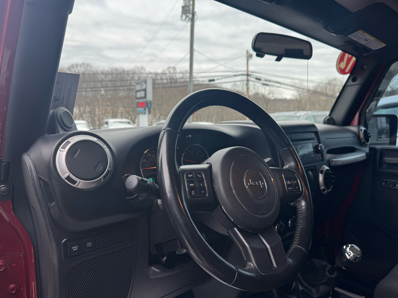 Get ready to hit the road in style with this eye-catching Red 2012 Jeep Wrangler! Boosted by a powerful 3.6L V6 engine, this beast is equipped to conquer any terrain with its impressive Rock-Trac 4WD system and Tru-Lok front & rear axles. The rugged exterior is accentuated by black bumpers, fender flares, and rock rails, giving this Wrangler a mean and ready-for-action look.